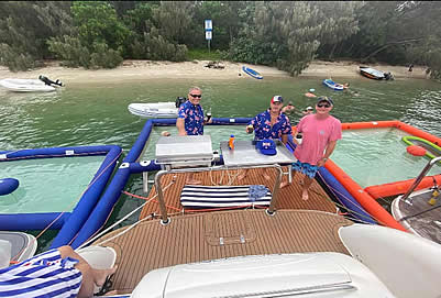 Magic Swim weighs approximately 17 kg and connects to your boat via the cleats. Once attached, it can be inflated using a 12-volt, 240-volt, or foot pump, filling the internal chambers with air in around five minutes.